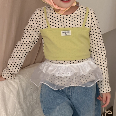 비다이어리.도트티셔츠뷔스티에세트