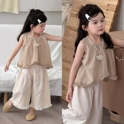 베이지체크레이스바지셋 / 수입